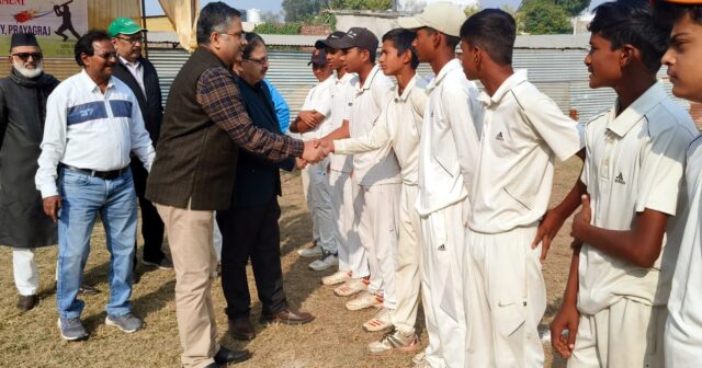 फोटो:अंडर-14 क्रिकेट प्रतियोगिता में खिलाड़ियों से मिलते केपी ट्रस्ट के पूर्व अध्यक्ष डॉ. सुशील सिन्हा