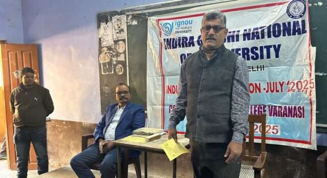 VARANASI NEWS: हरिशचंद्र पी.जी. कॉलेज में संचालित इंदिरा गांधी राष्ट्रीय मुक्त विश्वविद्यालय (इग्नू) अध्ययन केंद्र – 48048 पर प्रवेश प्रमोशन के लिए असिस्टेंट रीजनल डायरेक्टर डॉ. श्रवन कुमार पांडेय के उपस्थिति में प्रवेश जागरुकता कार्यक्रम सम्पन्न हुआ। स्वागत प्रो. अनिल कुमार तथा धन्यवाद उप समन्वयक डॉ. ओम शर्मा ने किया।प्रवेश के लिए। ऑनलाइन आवेदन की तिथि 15 फरवरी 2026 तक है। इस संबंध में इग्नू अध्ययन केंद्र के समन्यवक प्रोफेसर अनिल कुमार ने इग्नू से प्राप्त शिक्षा से लाभ को विस्तृत रूप से बताया तथा इसके डिग्री को विदेश में भी वरीयता दी जाती है इग्नू शिक्षा को सबके घर तक पहुँचा रहा है l स्नातक स्तर पर बी. ए. एवं बी.कॉम., स्नातकोत्तर स्तर पर एम.ए., एम.कॉम. व एम.एस-सी.- रसायन विज्ञान और विभिन्न विषयों में , डिप्लोमा व पोस्ट ग्रैजुएट डिप्लोमा (विधि के छात्रों के लिए) आदि पाठ्यक्रमों में दाखिले के अंतिम तिथि 15 फरवरी 2026 है। उन्होंने आगे बताया कि सत्र जनवरी की प्रवेश प्रक्रिया ऑनलाइन चल रही है। इग्नू में प्रवेश के उपरांत अध्ययन सामग्री विद्यार्थियों को मुफ्त उपलब्ध है। अनुसूचित जाति व अनुसूचित जनजाति के लिए प्रवेश आधे शुल्क पर है। इच्छुक छात्र ऑनलाइन आवेदन कर प्रवेश ले सकते हैं और किसी भी अन्य जानकारी के लिए इग्नू अध्ययन केंद्र – 48048 हरिश्चंद्र महाविद्यालय में संपर्क कर सकते हैं। डॉ. श्रवन कुमार पांडेय ने इस अवसर पर इग्नु के विभिन्न प्रोग्राम में प्रवेश के बारे में विस्तृत रूप से चर्चा की तथा इसके महत्व पर चर्चा की I विधि के छात्रों के लिए इग्नू ने डिप्लोमा कोर्स भी है। डॉ. पांडेय जी ने कहा की विधि डिग्री के साथ छात्र अगर साइबर लॉ, उपभोक्त, क्रिमिनल जस्टिस इत्यादि में डिप्लोमा करता है तो विधि की डिग्री का महत्व और अधिक हो जाता है।