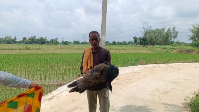 JASWANTNAGR/ETAWA NEWS: क्षेत्र के गांव नगला भदौरिया में मंगलवार शाम को हाइटेंशन बिजली के तार की चपेट में आकर एक राष्ट्रीय पक्षी मोर की मौके पर ही मौत हो गई।ग्रामीणों ने घटना की सूचना तत्काल पुलिस को दी।गांव निवासी किसान राघव ने बताया कि उसके खेत के पास लगे बिजली के हाइटेंशन तार से अचानक करंट लगने के कारण एक मोर की मौके पर ही मौत हो गई।सूचना मिलने पर स्थानीय पुलिस चौकी उपनिरीक्षक ललित चतुर्वेदी व वन विभाग बसरेहर रेंज से अवधेश कुमार भी टीम के साथ घटनास्थल पर पहुंचे।वन विभाग की टीम ने मृत मोर के शव को कब्जे में लेकर नियमानुसार पोस्टमार्टम कराया और इसके बाद उसे दफना दिया गया।अधिकारियों ने बताया कि यह करंट लगने की वजह से हुई प्राकृतिक मौत मानी जा रही है, फिर भी रिपोर्ट तैयार की जा रही है।