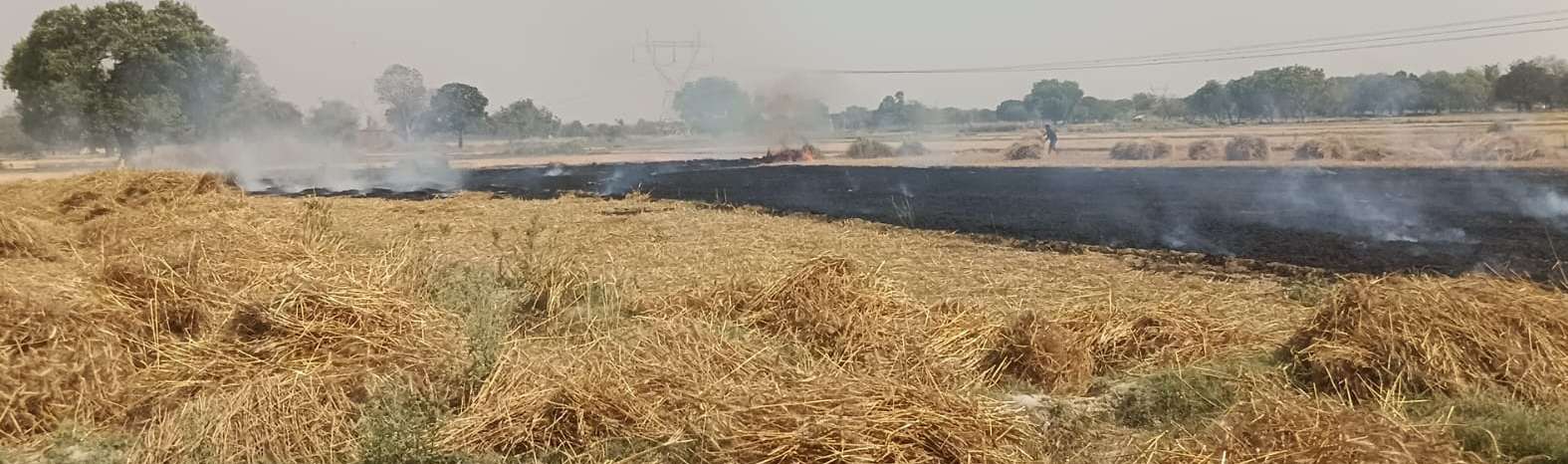 हाईटेंशन तार से निकली चिंगारी, गेहूं की फसल जलकर खाक