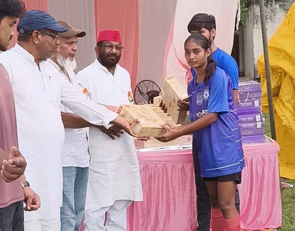 BHADOHI NEWS: जिला स्टेडियम मुसीलाटपुर में फुटबॉल के स्टेट लेवल के तीन दिवसीय चैम्पियनशिप का आयोजन किया गया। जिसका उद्घाटन वरिष्ठ कालीन निर्यातक शाह आलम अंसारी के द्वारा किया गया। जबकि प्रथम दिन के विजेता टीम को सपा विधायक जाहिद बेग ने पुरस्कृत किया। इस राज्यस्तरीय फुटबॉल प्रतियोगिता में विभिन्न जनपदों की कुल आठ टीमें प्रतिभाग कर रही है। उद्घाटन मैच भदोही व मिर्जापुर की गल्र्स टीम के बीच खेला गया। जिला उपक्रीडा अधिकारी धर्मेंद्र कुमार व जिला फुटबॉल एसोसिएशन की सचिव बिंदू सिंह के साथ विधायक जाहिद बेग ने खिलाड़ियों से परिचय प्राप्त किया। पुरस्कार वितरित करते हुए विधायक ने सभी खिलाड़ियों का उत्साहवर्धन किया। उन्होंने कहा कि खेल हमें जीवन में हार और जीत को समान भाव से स्वीकारने और खेल भावना से जीवन जीने के लिए प्रेरित करते हैं। किसी गांव, कस्बे या शहर की पहचान वहां के खेल, खिलाड़ी और मैदान से होती है। किसी खेल में कौन जीता और कौन हारा यह महत्वपूर्ण नहीं होता है बल्कि खिलाड़ी खेल के मैदान में उतारा है यह महत्वपूर्ण होता है। समाजवादी पार्टी के जिला प्रवक्ता अलीशेर खां ने कहा कि खेल हमें नियमों से चलना एवं मर्यादा का पालन करना सीखाते है। जीवन में भी खेल भावना अहमियत रखती है। नियम कानून की मर्यादा में रहते हुए कैसे धैर्य के साथ अपने विरोधी को परास्त किया जाता है। यहीं एक खिलाड़ी की पहचान होती है। इस मौके पर एमआरसी क्रिकेट क्लब के सचिव बिपिन कुमार राय, तालिब अंसारी, इस्माइल खां व मणिकांत गिरी आदि प्रमुख रूप से मौजूद रहें। अंत में प्रतियोगिता के आयोजक अनीस अंसारी ने सभी के प्रति आभार जताया।