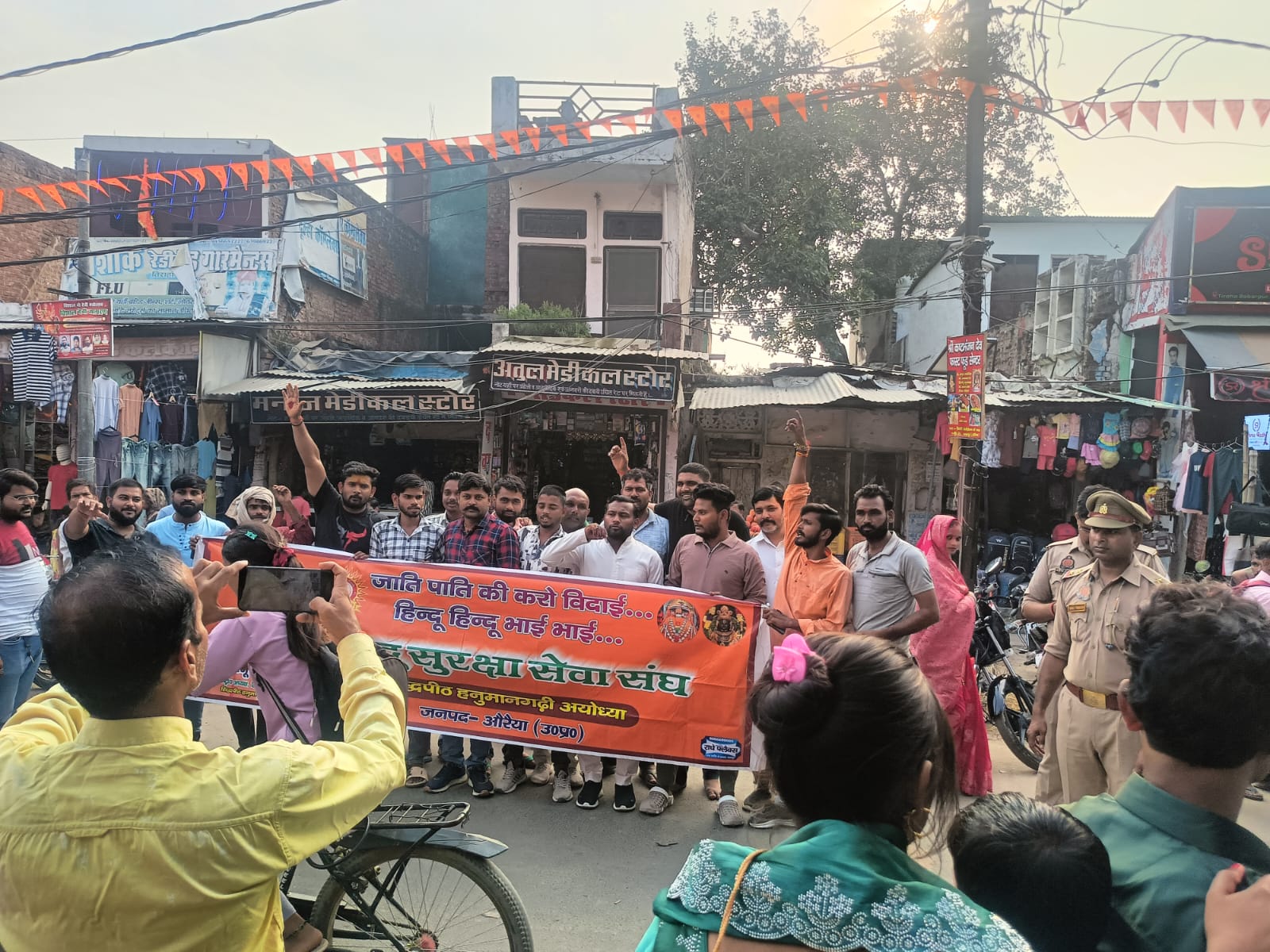 स्वामी प्रसाद मौर्या द्वारा लगातार सनातन धर्म और हिन्दू देवी देवताओं पर अभद्र टिप्पणी के विरोध में बुधवार को महंत राजू दास महाराज के आवाहन पर पूरे उत्तर प्रदेश में हिंदू सुरक्षा सेवा संघ के द्वारा बाबरपुर तिराहे पर पुतला दहन का आवाहन किया गया था, मुस्तैद पुलिस प्रशासन ने रोक लगाते हुए पुतला दहन नहीं करने दिया, संगठन के जिला अध्यक्ष उमंग पोरवाल ने नाराजगी व्यक्त की है। जिसमें हिंदू सुरक्षा सेवा संघ के सदस्य बड़ी संख्या में एकत्र हो कर, जय श्री राम, महंत राजू दास जी महाराज जिंदाबाद के नारो के साथ साथ स्वामी प्रसाद मौर्य मुर्दाबाद के नारे भी लगाए। पुतला दहन के बाद संगठन के सदस्य कोतवाली अजीतमल पहुंचकर एक लिखित प्रार्थना पत्र अजीतमल कोतवाली प्रभारी ललितेश त्रिपाठी को सौंपा । संगठन के पदाधिकारियों ने स्वामी प्रसाद मौर्या राष्ट्रीय सोशल समाज पार्टी के अध्यक्ष पर आरोप लगाया कि इनके द्वारा मां लक्ष्मी पर अभद्र टिप्पणी की गई है । उमंग पोरवाल ने स्वामी प्रसाद मौर्या के खिलाफ मुकदमा दर्ज किए जाने की पुलिस से मांग की है। इस मौके पर सक्षम पोरवाल (उमंग) जिला अध्यक्ष, विमल कुमार, देव कुमार, अमित कुमार, राहुल राजपूत , प्रशांत पहलवान, प्रियांश कुमार सहित भारी संख्या में संगठन के लोग मौजूद रहे।