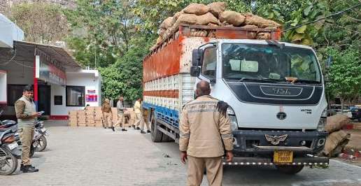 JHANSI NEWS: सीपरी बाजार थाना पुलिस और सेल टैक्स विभाग ने शनिवार को 50 लाख रुपए से अधिक कीमत की अंग्रेजी शराब बरामद की। यह कार्रवाई ग्वालियर रोड पर सेल टैक्स टीम की नियमित चेकिंग के दौरान हुई। जानकारी के मुताबिक, चेकिंग के दौरान ट्रक संख्या यूपी 13 बी टी 9800 में सवार चालक और अन्य लोग सेल टैक्स टीम को देखकर ट्रक छोड़कर फरार हो गए। जब टीम ने ट्रक की तलाशी ली, तो पाया कि इसके भीतर फोम के गत्तों के नीचे शराब की पेटियां छिपाई गई थीं। सेल टैक्स विभाग ने तुरंत पुलिस को सूचना दी। पुलिस ने मौके पर पहुंचकर शराब से भरे ट्रक को जब्त किया और कार्रवाई शुरू कर दी। जांच में कुल 503 पेटी शराब बरामद हुई, जिसकी अनुमानित कीमत 50 लाख रुपए से अधिक बताई जा रही है।