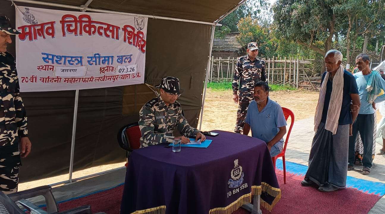 LAKHIMPUR KHERI NEWS: 70वीं वाहिनी, सशस्त्र सीमा बल, लखीमपुर खीरी द्वारा सीमावर्ती क्षेत्रों में रहने वाले ग्रामीणों के स्वास्थ्य एवं कल्याण को ध्यान में रखते हुए दिनांक 07 मार्च 2026 को ‘डी’ समवाय बरसोला के कार्यक्षेत्र अंतर्गत जीवंत ग्राम- सूरतनगर एवं ग्राम-जसनगर में ग्रामीणों के लिए निःशुल्क मानव चिकित्सा शिविर /ओ.पी.डी. चिकित्सा शिविर का आयोजन किया गया । इस चिकित्सा शिविर श्री राजन कुमार श्रीवास्तव , कमांडेंट के दिशानिर्देश एवं डॉ. दिनेश कुमार, द्वितीय कमान अधिकारी (चिकित्सा) के नेतृत्व में ग्रामीणों का स्वास्थ्य परीक्षण किया गया तथा उन्हें आवश्यक चिकित्सकीय परामर्श एवं निःशुल्क दवाइयों का वितरण किया गया । शिविर के दौरान ग्राम- सूरतनगर में कुल 42 ग्रामीणों का स्वास्थ्य परीक्षण किया गया, जिनमें पुरुष–19, महिलाएँ–14 एवं बच्चे–09 शामिल रहे। इसी प्रकार ग्राम – जसनगर में कुल 59 ग्रामीणों का स्वास्थ्य परीक्षण किया गया, जिनमें पुरुष–34, महिलाएँ–16 एवं बच्चे–09 शामिल रहे । सभी लाभार्थियों को निःशुल्क चिकित्सकीय जांच के साथ आवश्यक दवाइयाँ उपलब्ध कराई गईं ।  इसके अतिरिक्त शिविर के दौरान उपस्थित ग्रामीणों को नशा मुक्ति, मौसमी बीमारियों से बचाव, स्वच्छता एवं व्यक्तिगत साफ-सफाई के महत्व के बारे में भी जागरूक किया गया। चिकित्सकों द्वारा ग्रामीणों को स्वस्थ जीवनशैली अपनाने तथा समय-समय पर स्वास्थ्य परीक्षण कराने की सलाह दी गई । इस अवसर पर ग्रामीणों ने सशस्त्र सीमा बल द्वारा आयोजित इस जनकल्याणकारी पहल की सराहना करते हुए बताया कि ऐसे चिकित्सा शिविरों से दूरदराज के क्षेत्रों में रहने वाले लोगों को समय पर उपचार एवं स्वास्थ्य संबंधी जानकारी प्राप्त होती है । 70वीं वाहिनी सशस्त्र सीमा बल द्वारा सीमावर्ती क्षेत्रों में रहने वाले लोगों के स्वास्थ्य, सुरक्षा एवं सामाजिक सहयोग को ध्यान में रखते हुए समय-समय पर इस प्रकार के चिकित्सा एवं जनजागरूकता कार्यक्रमों का आयोजन किया जाता रहा है, जिससे स्थानीय ग्रामीणों को सीधा लाभ मिल रहा है ।