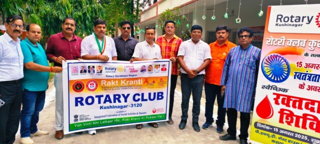 रोटरी क्लब कुशीनगर ने आयोजित किया ‘रक्तक्रांति’ स्वैच्छिक रक्तदान शिविर