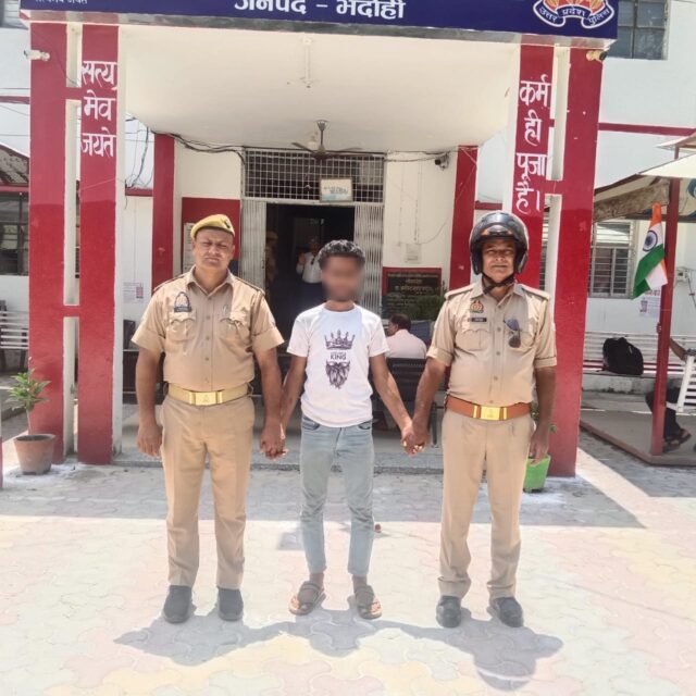 BHADOHI NEWS: कोतवाली पुलिस ने क्षेत्र के मामदेवपुर मर्यादपट्टी स्थित दुकान से मोबाइल, स्मार्ट वॉच व नगदी चोरी करने वाले शातिर चोर को 8 घंटे के अंदर गिरफ्तार कर लिया। चोर के कब्जे से पुलिस ने चोरी की एक मोबाइल, एक स्मार्ट वॉच व 2450 रुपया नगदी बरामद किया है। उक्त स्थान पर नगर के काजीपुर निवासी मो.फैजान अंसारी पुत्र इरफान अंसारी का मोबाइल की दुकान है। 18 अगस्त की रात में उनके दुकान में चोरी हो गई थी। जिसकी तहरीर उनके द्वारा पुलिस को दी गई थी।अभियुक्त अबतुलहा अंसारी पुत्र मो.फारुक अंसारी निवासी ग्राम जलालपुर थाना व जनपद भदोही द्वारा मामदेवपुर मर्यादपट्टी स्थित उनके टी-स्टाल से एक वनप्लस कंपनी का मोबाइल, एक स्मार्ट वॉच व नगद 2500 रुपए चोरी कर लिया गया है। पूरी घटना दुकान में लगे सीसीटीवी में रिकॉर्ड है। सूचना पर थाना भदोही पर आरोपी के विरुद्ध बीएनएस की धारा-305